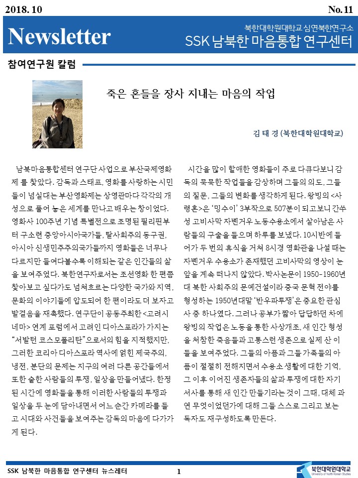SSK남북한마음통합연구센터 뉴스레터 2018년 10월호